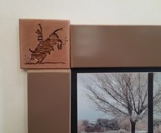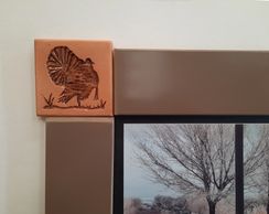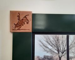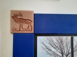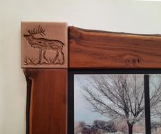 Left facing Elk and Right Elk track in Dirt-2 color shown in stone tile backsplash.