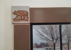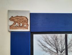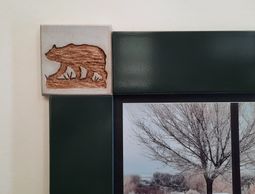 Right Bear Track and Left Facing Bear in Coffee-4 color shown in stone tile backsplash.